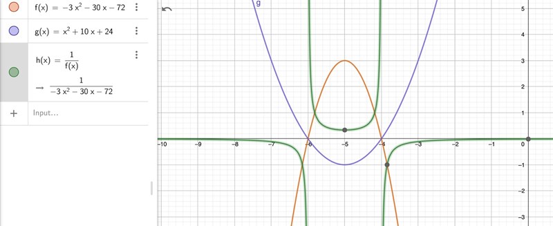 Du har tagit reda på att funktionens nollställen är vid x = -4 och vid x = -6.