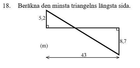 Jag har försökt ganska länge men kommer verkligen inte framåt. Om vi benämner lilla triangels bottensida som A och stora triangels sida som B så vet jag att A+B = 43. Mer än så kan jag inte :/
