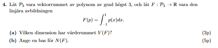 Angående (b) tänkte jag att man kan börja med att konstatera att enligt dimensionssatsen. Sedan kan vi ansätta och beräkna: