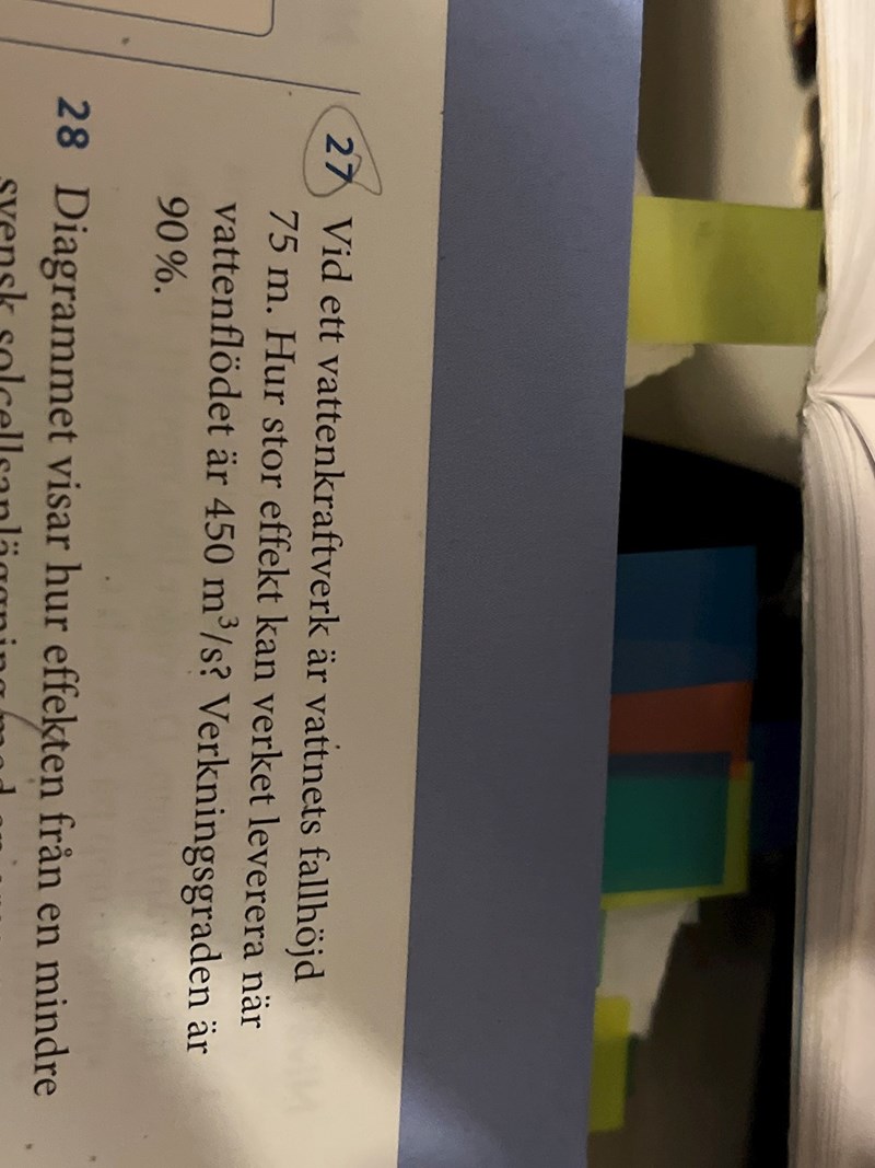Hej! Fattar inte hur man ska lösa denna uppgift. Tänkte först att man skulle kunna använda sig av formeln för effekt P=dW/dt men det går ju inte. Vet riktigt inte vart 450 m^3/s ska användas.