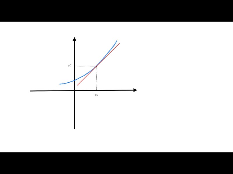 I diagrammet ser du en kurva och en rät linje. I skärningpunkten(x0,y0) har kurvorna samma lutning: