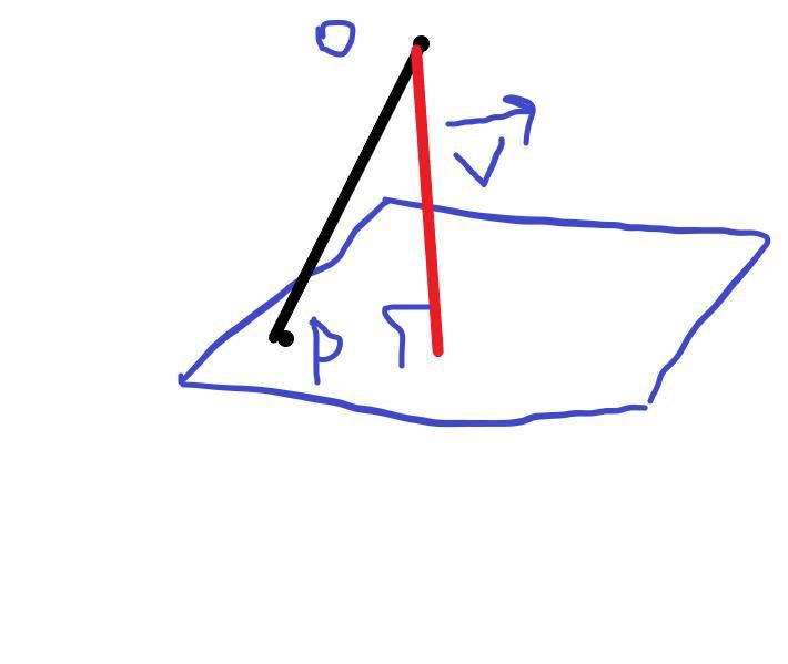 Den vektorn är enligt skissen ovan v om du tänker dig att v har spetsen i O. För att få reda på punkten i planet så tar du -v så får du punkten. (kontrollera alltid sen att den funna punkten ligger i planet genom att sätta in den i planets ekvation)