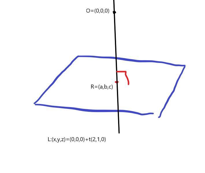 Sen vet jag inte hur jag ska fortsätta när jag vill hitta närmaste punkten till origo. Vill jag projicera (0,0,0) på planet ortogonalt? Hur börjar jag då?