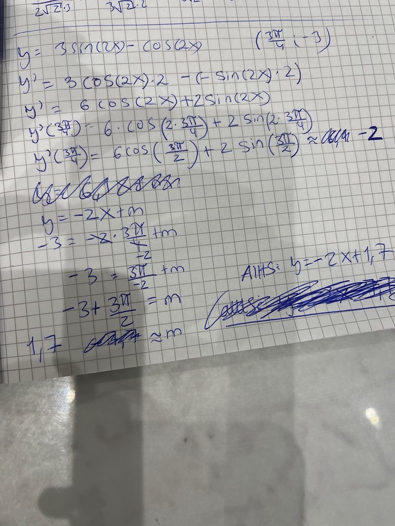 Okej. Ska jag alltså svara skriva m värdet som -3 + (3pi)/2 i funktionen istället för 1.7?