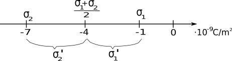 Om jag kollar ger E=σ1'/2ε det elektriska fältet bara för σ1' eller för hela systemet? Det som jag tolkar är att E=σ1'/2ε är för plattan till vänster för att om jag tar σ2' istället för σ2'=σ2-(σ1+σ2)2 så får jag ett andra värden.