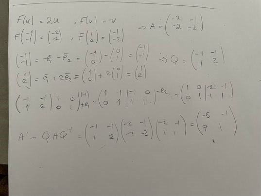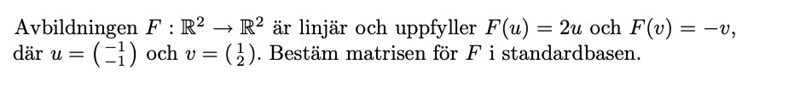 Juste!! Nu förstår jag. Men om vi säger att jag vill istället hitta matrisen till avbildningen i dess bas, dvs inte i standard basen, hur kan jag gå från till den andra basen?