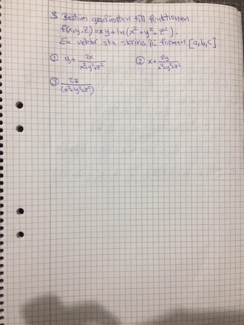 Du har deriverat korrekt och har fått ut gradientens tre komponenter.