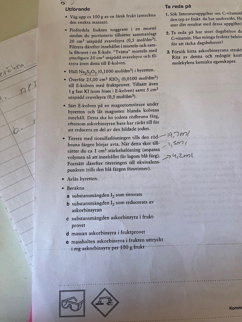 Bestämma halten C vitamin i kiwi