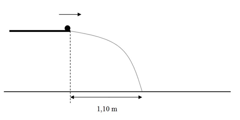 Just när kulan trillar över bordskanten så har den en viss hastighet i x-led (som är konstant, om man kan bortse från luftmotståndet) som beror på hur snabbt kulan rullade på bordet, och hastigheten 0 i y-led (som accelererar med accelerationen g).