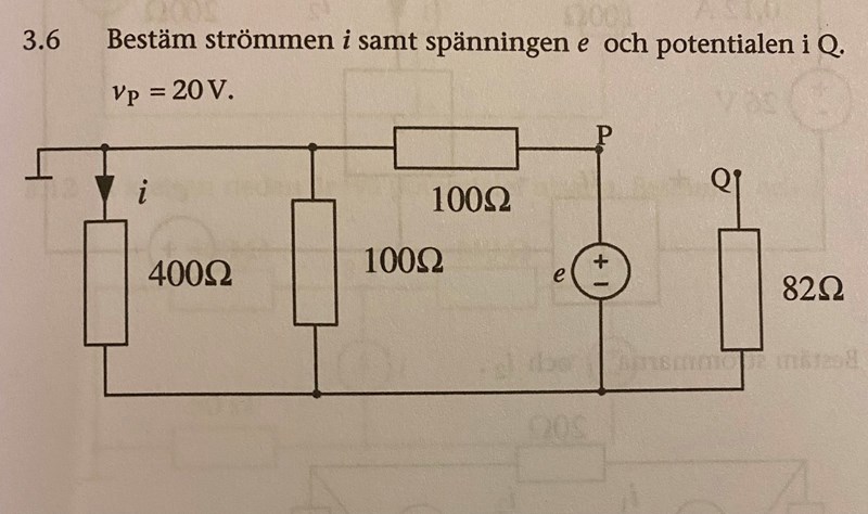 Det är dumt att använda i för strömmen genom det horisontella motståndet, eftersom det är strömmen genom 400 ohms motståndet, vilket även är en storhet som skall vara med i svaret.