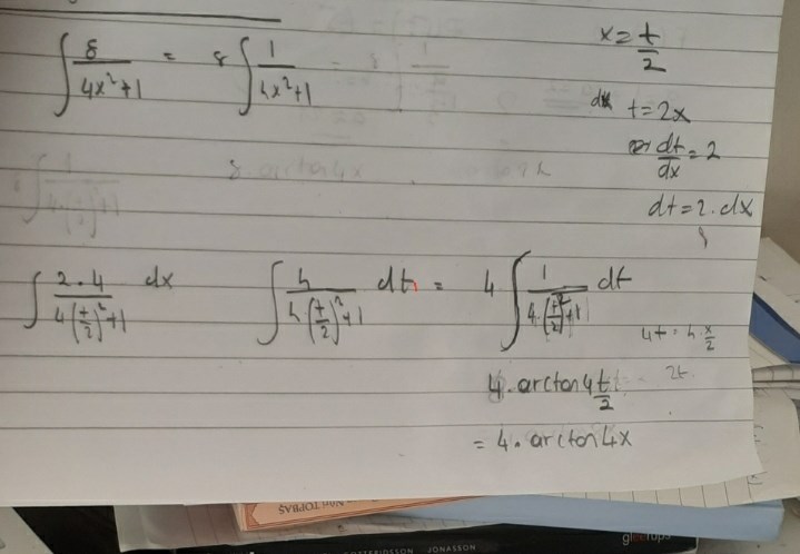 Tackar. Har hittat 4arctan4x+C . Men i facit 4arctan2x+C