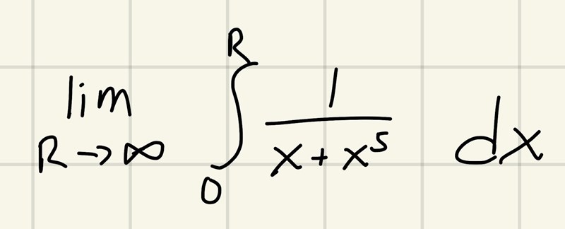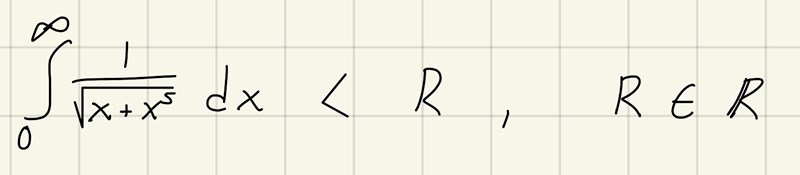 Alltså måste jag hitta en integrand som är mindre än den vi har och visa att den är divergent, men jag har svårt att hitta någon integrand som är strikt mindre än den vi har.