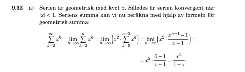 min fråga är hur kan x^(n-1) gå mot noll vid nämnaren när n —> oändligheten det borde istället vara x^oändlighet -1 = x^oändlighet