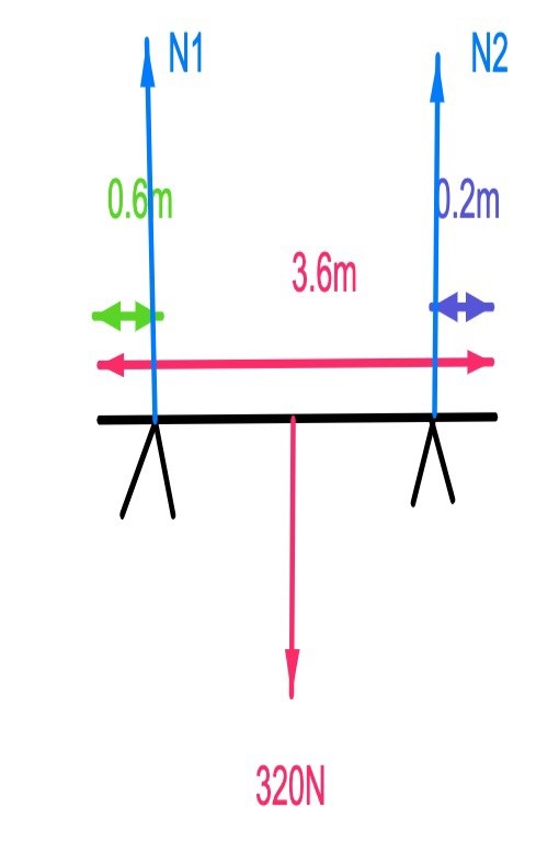 N2×(3.6m−0.2m−0.6m)=320N×(3.6m/2−0.6m)