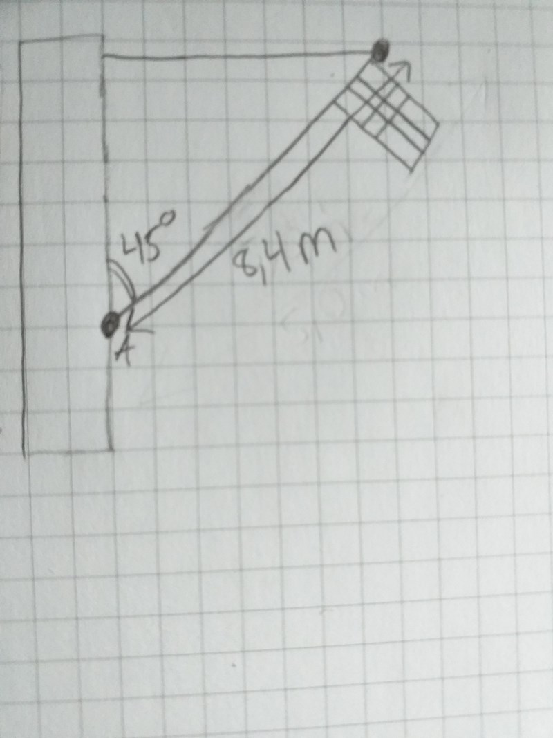 Uppgiften: En flaggstång väger med flagga 53 kg. Flaggstången är 8,4 m lång. Flaggstången är fäst vid