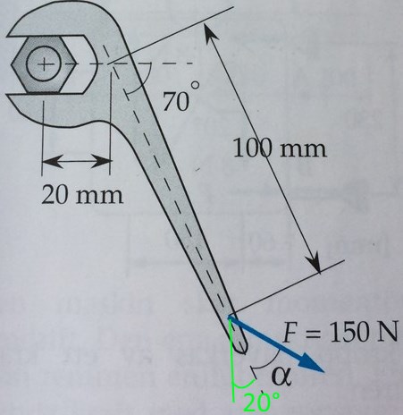Man kan "enkelt" se det eftersom skiftnyckeln lutar 70° mot x-axeln (se markering överst i bild).