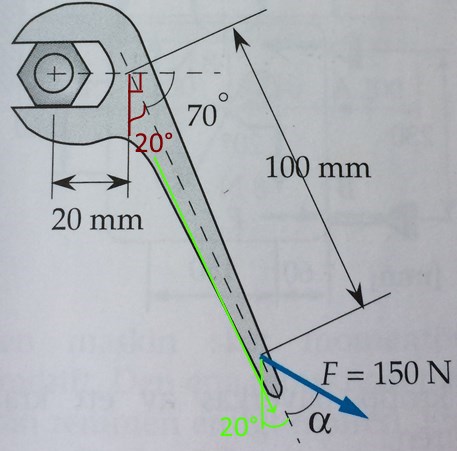 Tack. Hade du kunnat förklara hur man kommer fram till att skiftnyckelnlutar 20 grader mot y-axeln? Går detta att beräkna på något sätt eller ska man "bara se det"?