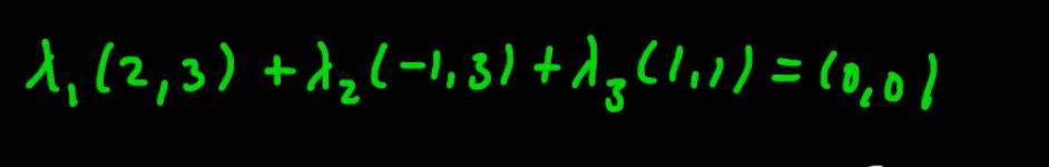 Så i den här fallet har vektorer dimensioner 2 och vi har totalt 3 vektorer så vektorerna kommer att vara linjär beroende med varandra.