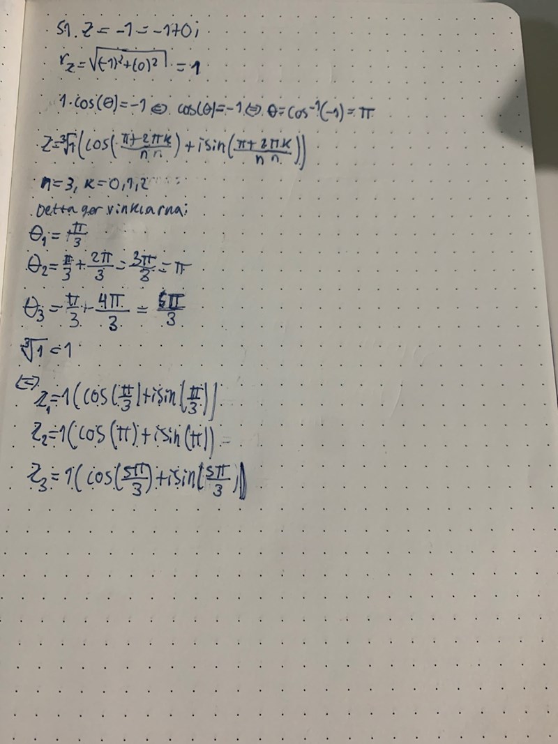 Men sen förstod jag inte metoden helt ändå. Polär form och sånt där kommer jag ihåg. Läste lite och gjorde uppgiften igen och fick fram rätt svar, tack vare att jag använde formeln/metoden för att få fram vinklarna rätt: