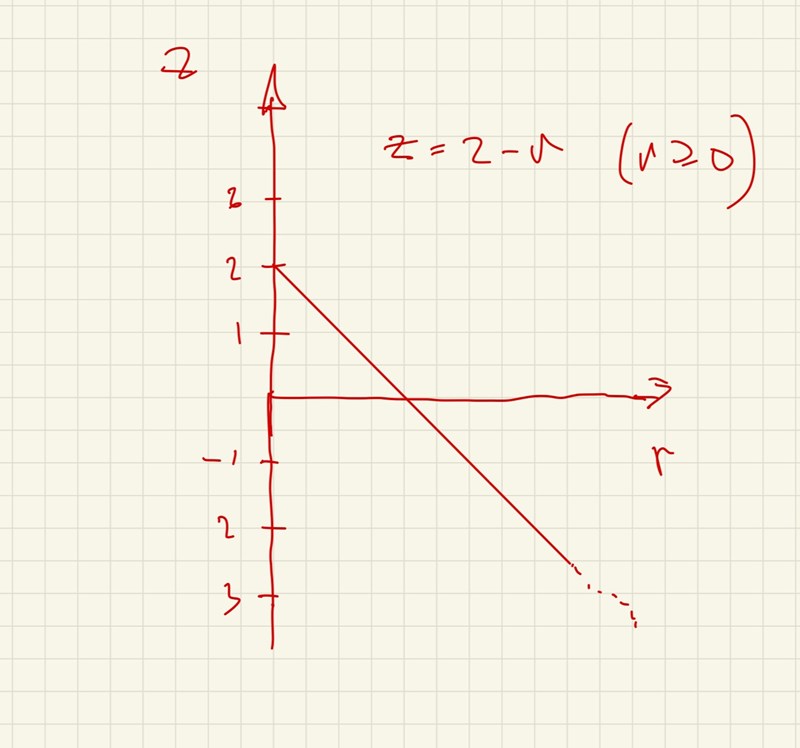 Så vi kan skriva ytan som z = 2 - r. Kan du skissa den?