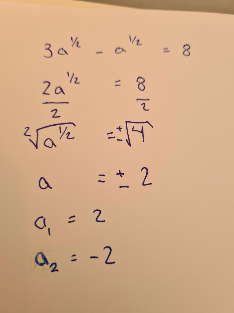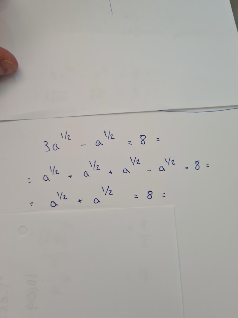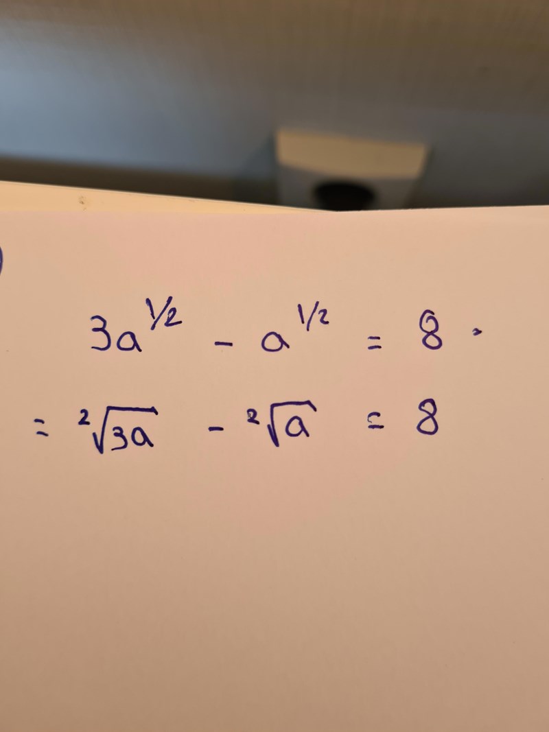 a^0,5+a^0,5=8 leder till 2a^0,5 =8