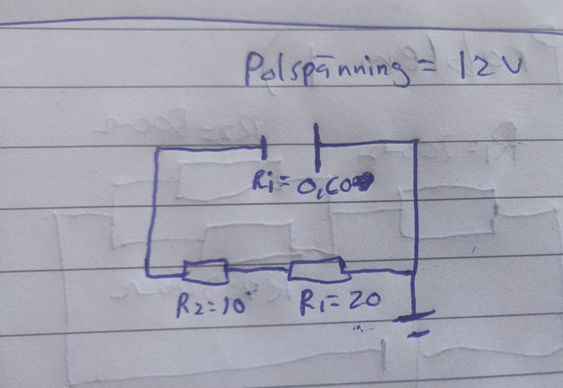 Jo det förstår jag, men jag vet inte om jag skall räkna in både Ri + R1 + R2 = totala U, eller om totala U är Ri + R1 + R2 + 12V som är polspänning. Elkunskap är jobbigt för mycket olika regler och formler som inte ens står med i formelsamlingen.