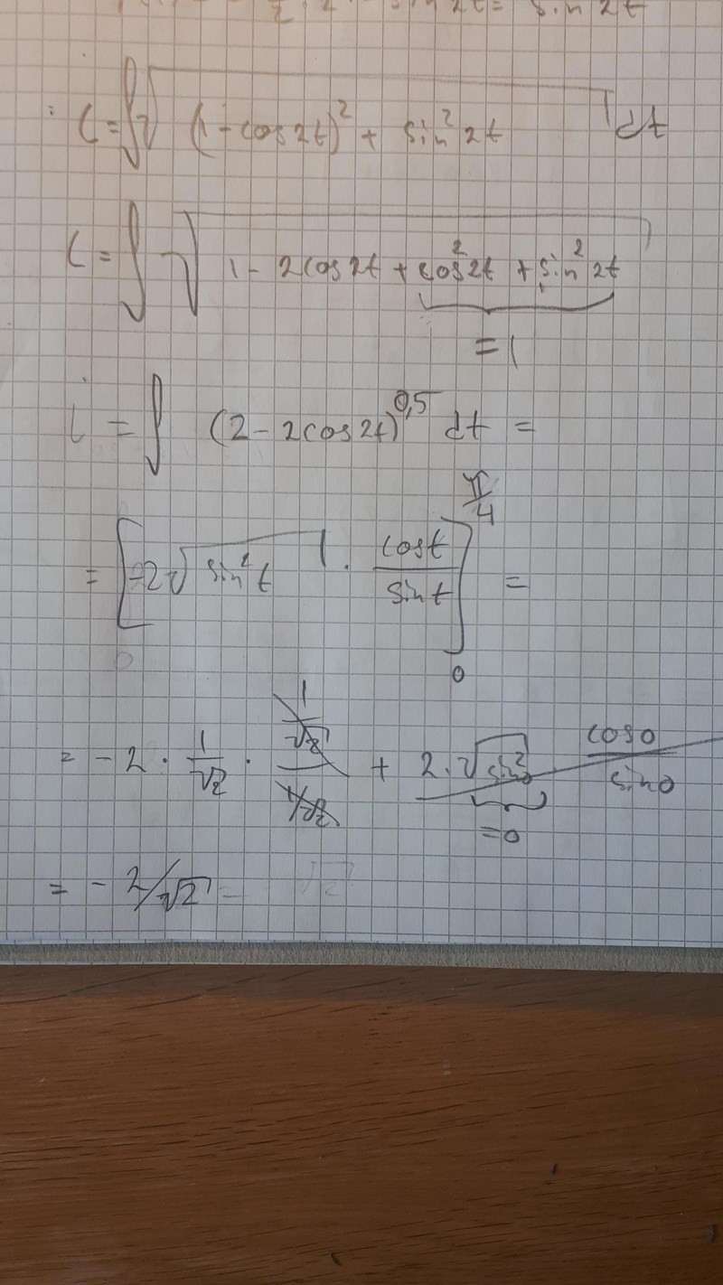Själva integreringen gjorde jag genom att slå in kommandot "integrate sqrt(2-2*cos2x)dx" i programmet "WolframAlpha" eftersom jag tyckte att den verkade mastig att integrera för hand. Jag vet inte riktigt hur jag ska börja i så fall.