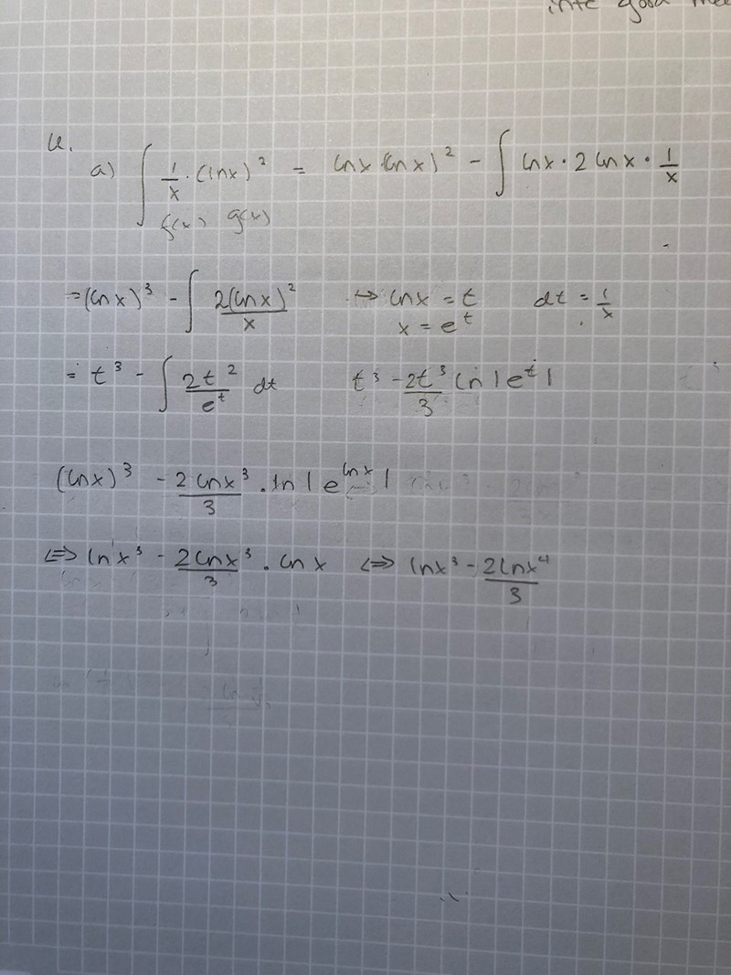 Hej igen, skulle behöva hjälp med att ta fram en primitiv funktion till 1xlnx2. Jag infogar en bild nedan på hur jag har gjort. Tack på förhand!