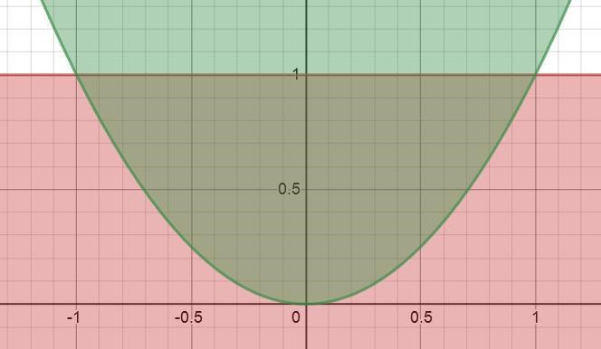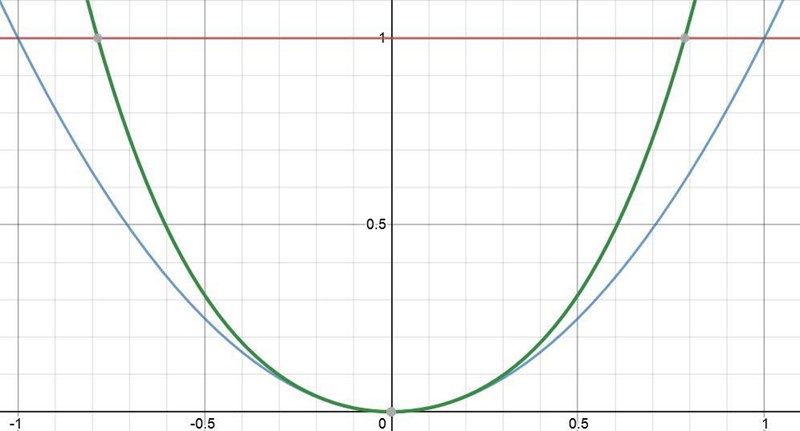Jag trodde att det var (1,1) och (-1,-1), men när jag ritade upp x4+x2 i grafen (grön linje i bilden nedan) finns dessa punkter inte med. Istället borde man söka punkterna när x4+x2 = 1?