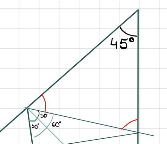 för att hitta den på högra vinkeln kan man använda sig av de 2 andra -> 180-(45+60)=75
