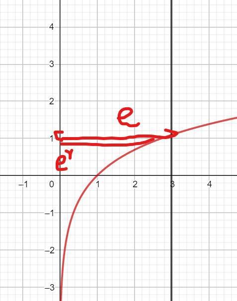 Jag tänkte att jag beräknar volymen för en cylinder och tar det subtraherat med volymen för ln(x) vilket blir e^y=x på grund av def av naturliga logaritmer. Är detta ett rätt tankesätt? Cylinder har radien e eftersom x-värdet som begränsar är lika med e