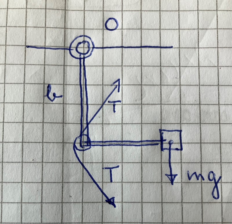 Sen undrar jag hur man ska tänka gällande vilka krafter som bidrar till moment i O förutom mg?