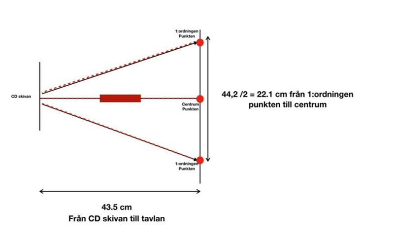 L = 43,5 - 0,2 = 43,3 (från CD-skivan till tavlan)