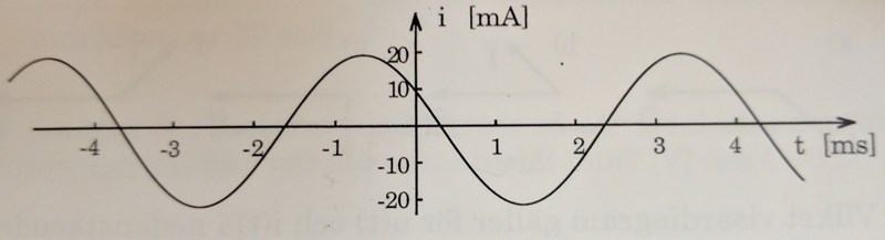 Jag har räknat ut: T = 4ms, f=250Hz, ω=500π rad/s och från grafen vet vi att = 20mA