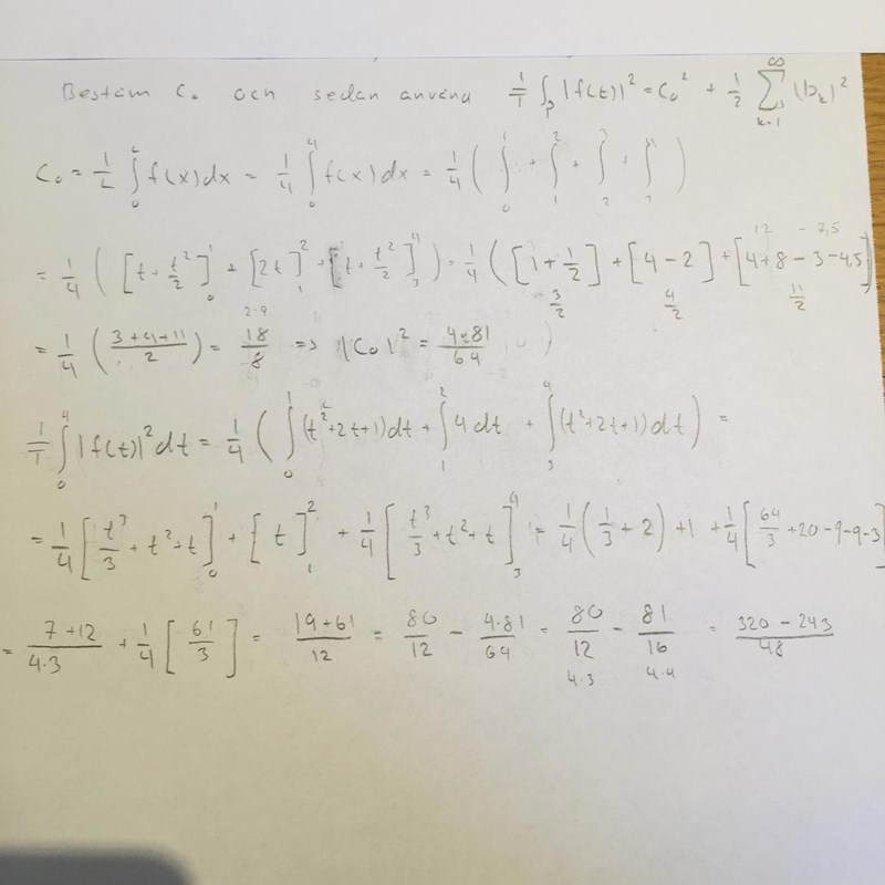 Hejsan, jag har fastnat på en uppgift som jag får fel svar. Jag är osäker om jag använder parsevals formel rätt: