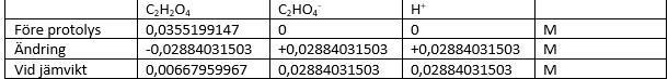 Beräkna syrakonstanten för Oxalsyra som lösas upp i vatten.