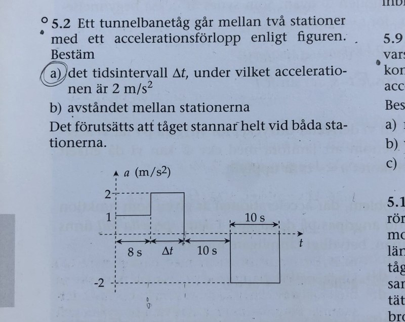 Under seminariet gicks det igenom en liknande uppgift där han löste frågan grafiskt. Försökte använda samma metod, dvs att arena av en at-graf ger hastigheten. Problemet är ju dock att det just är tiden jag söker.