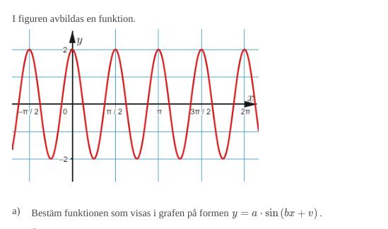 Jag läste av att a = 2 och b = 4 (eftersom perioden är pi/2).