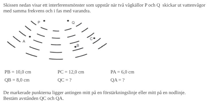 Hej! Hur får jag reda på att punkt B ligger på 1:a maximilinjen genom att kolla på bilden, för att veta att delta s = 1 våglängd och kunna använda det i min lösning? Tack på förhand!