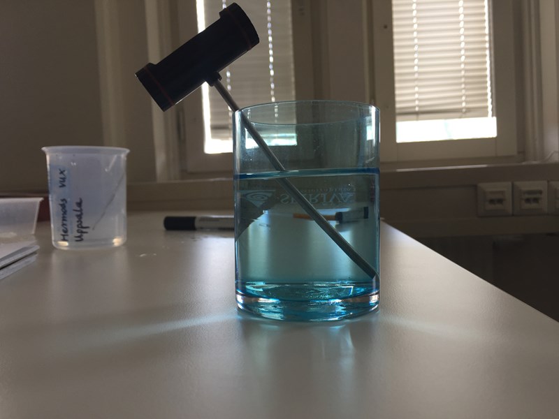 Skrev du förbättringar till ett experiment som fortfarande använder ett glas och en penna? Eller föreslog du exempelvis att man kan använda en rak vattenbehållare (inte krökt som ett glas) med en laser stråle?