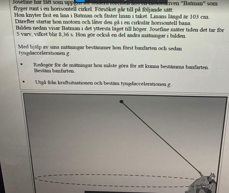 Det är inte supertydligt, men man ska då mäta radien i förhållande till snörets längd och därmed bestämma farten.