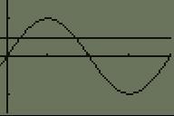 Jag hade ritat grafen y=sin(3v) med grafräknare som hjälpmedel. sin(3v) har perioden 2pi/3 = 120 grader. I bilden ovan finns y=sin(3v) och y = 1/2 över intervallet 0<v<120 grader. Skärningspunkterna bestäms enkelt algebraiskt, dvs sin3v = 1/2 osv. För att svara på uppgiften så ska vi bara ange de vinklar på sin(3v) som ligger under linjen y=1/2, med restriktionen 0<v<90.