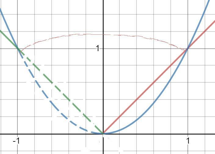 Ett område definierat av 0 < x < 1 och x^2 < y < x roteras runt den i