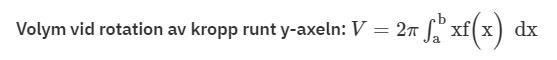Jag har formel för volym vid rotation y-axeln men förstår ej hur jag skall använda mig av den i denna uppgift.
