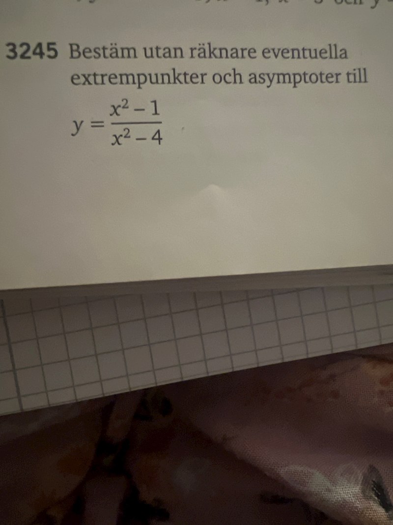 Behöver hjälp med att bestämma asymptoter. Jag vet att det finns en asymptot som är x=2 och en annan som är x=-2. Men i facit står det att en annan är y=1. Och jag undrar när man vet att x- och y -axeln är asymptoter