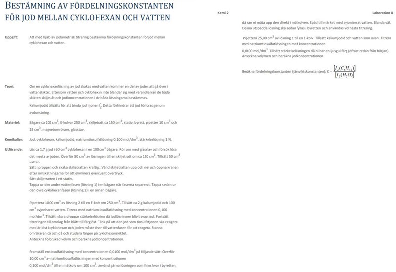 Har fyllt i allting i laorationen, men har nu kommit till resultatdelen och hjärnan står helt still när det gäller att beräkna fördelningskonstanten..