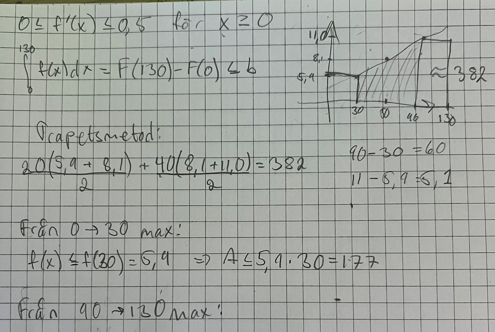 Jag förstår vad uppgiften går ut på men är osäker på om min ansats är korrekt. Trapetsmetoden kanske är inte det bästa i detta fall..