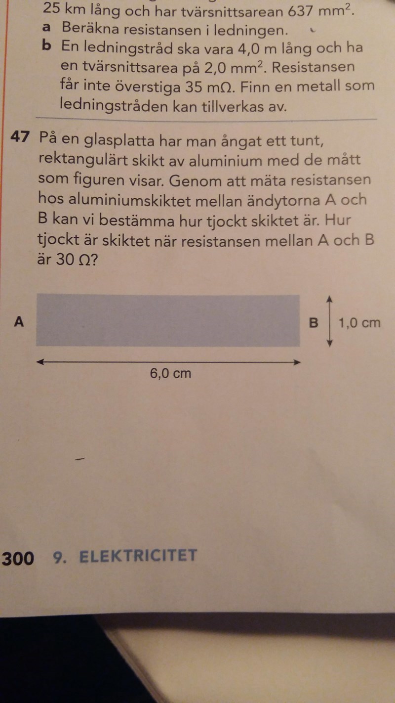 R= ρ * l / A där A(arean) i detta fall är B * tjockleken