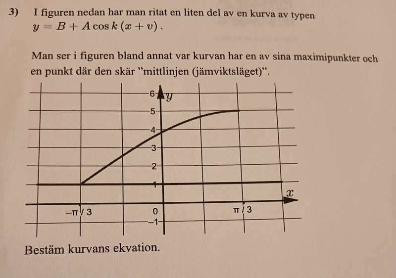 k och v kan du bestämma genom att titta på kurvans periodicitet och dess värde för x = 0