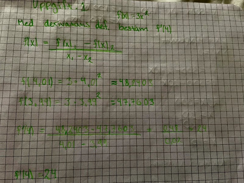 Den vanliga definitionen av derivata vore [f(x1)–f(4)] / (x1 –4) när x1 går mot 4.